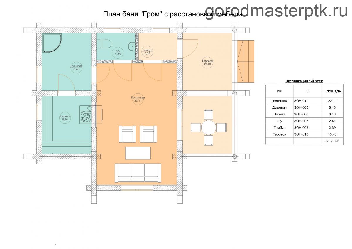 Размер по осям: 9,3х7,5м. Наружный размер: 10х8 м.