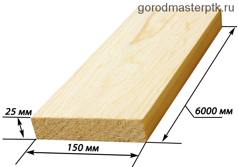 Толщина 25 мм и ширина 150 мм обеспечивают достаточную прочность при шаге лаг 400–600 мм, длина 6 м удобна для перекрытий и больших пролетов без лишних стыков.