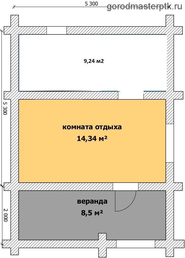Высота сруба: 1 этаж - 2,5 м, 2 этажж 1,2 м